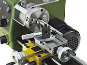 Support: Bed carriage made of die-cast zinc. Cross slide and top slide of steel (adjustment 60 or 45mm). Turning tool post for cutting tools size 8 x 8mm.