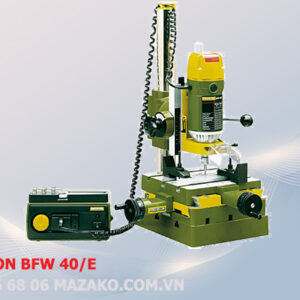 Machine bed: Of high quality cross-braced cast iron with wide-legged, prism slides. For vibration-free work even at high loads. With flange and threaded holes at back for fastening the drill and mill head PF 230. Covered lead spindle.