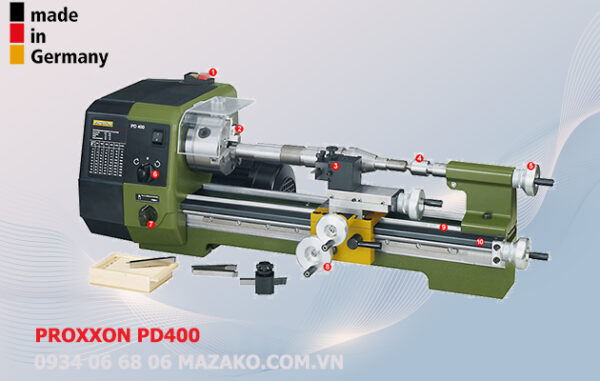 Centre distance 400mm. Swing 85mm. Height over cross slide 58mm. For machining steel, brass, aluminium and plastic. For face and straight turning, taper turning and thread cutting. With an extensive range of system accessories you can also drill, mill and slot.